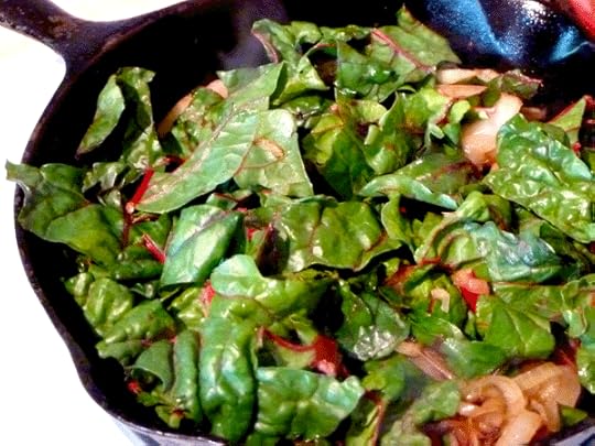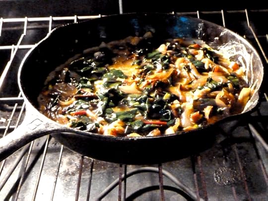 Add your garden goodies along with 1 tsp salt and cook until just ready. If you are cooking kale or chard, cook the stems first for four minutes. Then add the leaves and cook for four more minutes. If you are cooking summer squash, mushrooms, or sweet peppers, cook until the liquid evaporates.