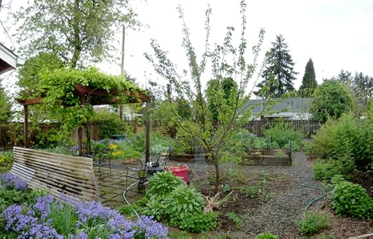 It’s easy to lose sight of how far I’ve come amongst the weeds and planting chores. But marking this anniversary is a time to acknowledge how hard work combined with fertile Willamette Valley soil and the passage of time can create an urban oasis. (The plastic roofing in the picture below is a long story I’ll write about later this week…)