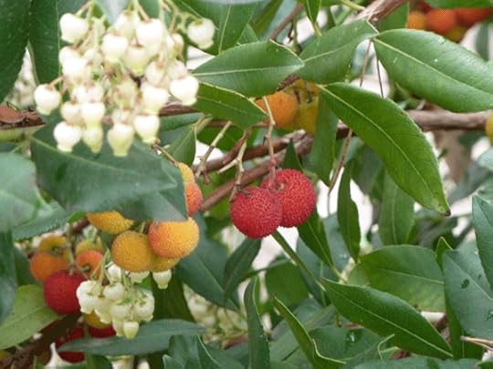 Here is a plant that may just solve multiple problems for you in your landscape: Strawberry Tree. In short, it's evergreen, produces edible fruits, fruits off-season when not much else is producing and is drought-tolerant.