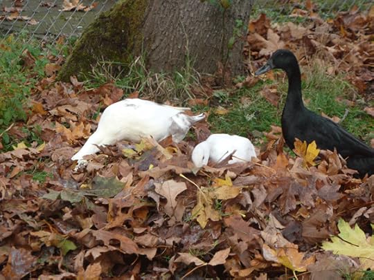 I collected the fallen leaves and mounded them over the beds. The runner ducks were huge fans of this process, foraging for bugs in the leaf piles. It's safe to say we were all having a blast.