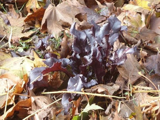 The winter crops are still growing strong – Bull's Blood beets, Rainbow swiss chard, and Lacinato kale. They looked "tucked in" under a winter blanket. It will keep them a little warmer to have that extra mulch and the slugs attracted by the leaves shouldn't bother these crops.