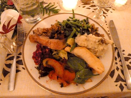 At the request of our hostess, the meal started with us all holding hands and sending good energy to the 14th guest at the table – the little baby in my tummy. Thanksgiving was everything is should be – a celebration of the people we love and the good food we are fortunate to have in life. The evening ended late, like midnight-late, and we all went home to warm, happy homes. How fortunate we are this year.