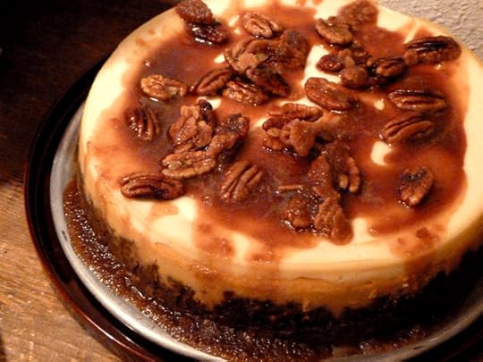 Desserts: pumpkin pie, chocolate layer cake w berry cream filling, chocolate empanadas, apple crisp and pecan cheesecake (above). I had a bit of everything – twice.
