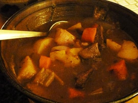 Later that night I pulled out my copy of the Art of Simple Cooking from the shelf and had Alice Waters tell me how to make beef stew. I mostly listened to her, but cut some corners to make it in an hour instead of 3+. I again stuffed myself with a huge bowl and some fantastic crust bread.