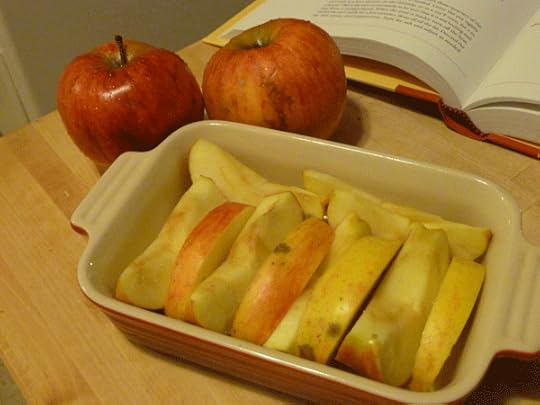 I don't have a picture of the finished product because, hey, I'm pregnant. You think a pregnant lady can wait to eat her crisp? Not this one anyway. The first night we used two big baking apples and the next two hard, but ripe, fall pears. I think this may add five more pounds to my ever growing belly, but Bug can thank me later.