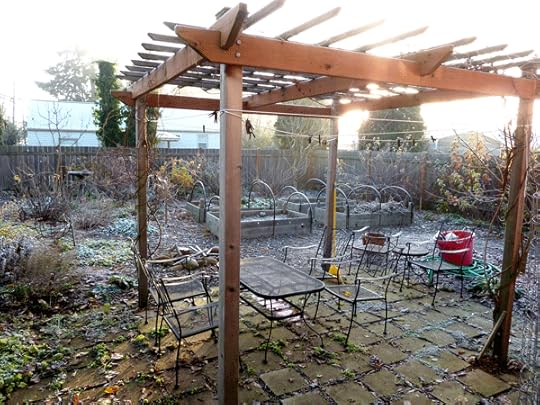 There is lots of work to be done outside, although our most recent renters took loving care of our home. But trees and vines need pruning, the compost needs turning, and I'm planning hoop houses over the raised beds to get some winter crops growing. It's kind of a frosty looking mess right now.