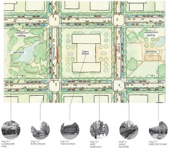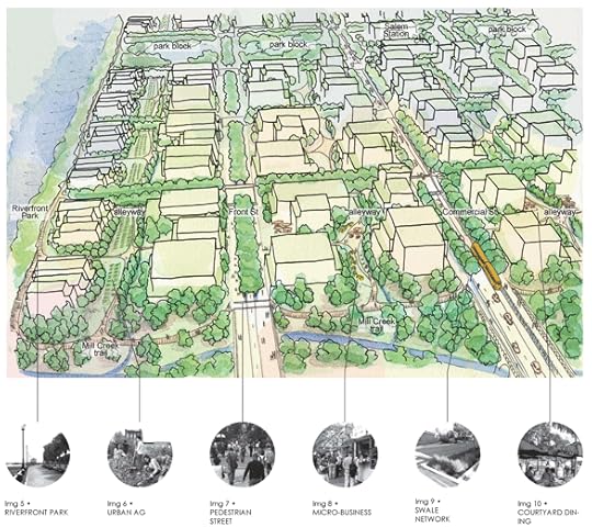 My station area was along the Oregon Electric line in a somewhat industrial, centrally located neighborhood of Salem, Oregon. I proposed a high-density, mixed use neighborhood, consistent with Salem's Comprehensive Plan. I named the area the "Cherry District" after Salem's historic food processing industry that once thrived here.
