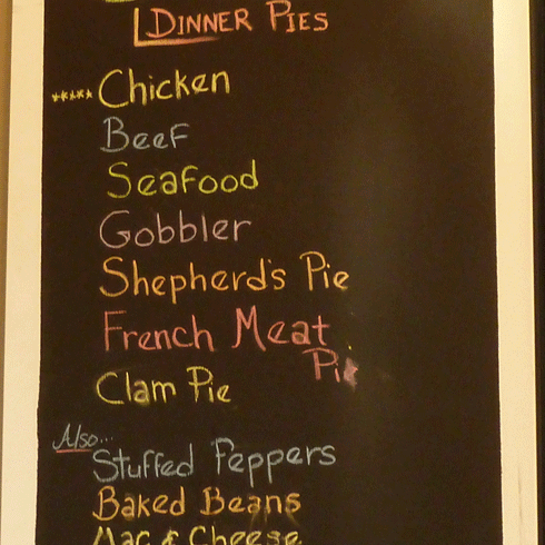 Another cool dining discovery – a bakery that sells pie. But not just boring pie. They have every dessert pie, sure. But they also sell savory meat pies like chicken, turkey, shepherd's pie, lobster pies, etc. You could eat there or take them home to bake. Why doesn't Portland, Oregon, have something like this?