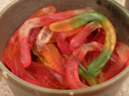 The gooey slugs were gummy worms. Cheap, full of corn syrup I am sure, but a big hit.