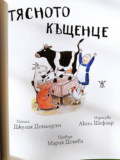 „Тясното къщенце“ (оригиналното заглавие е „A Squash and a Squeeze“). Това е първата съвместна работа на Джулия Доналдсън и Аксел Шефлър, публикувана точно преди 30 години.