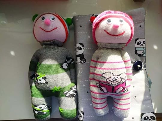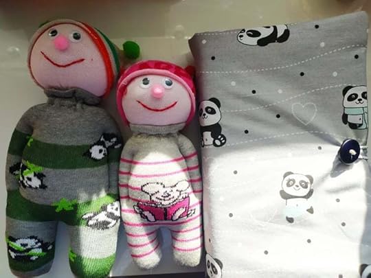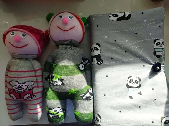 Облеклото с пандите ми е подарък, а човечетата ги уших снощи, докато гледах един страшен филм.