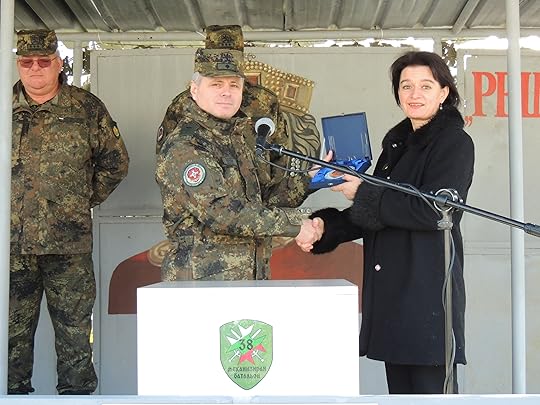 На специално тържество бригаден генерал Стоян Шопов ми оказа изключителна чест и ми връчи награда за това, че преди време написах текста на химна на Втора тунджанска механизирана бригада.