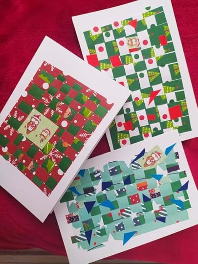И така, тазгодишните коледни картички ги преплетох. Имаше такъв елемент в сценографията на една от пиесите на фестивала Пиеро, и по спомен от там.
