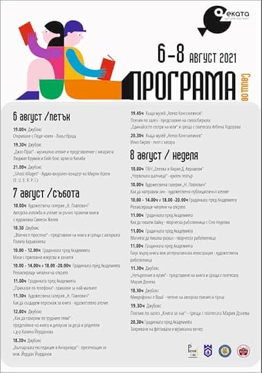 По този повод ще бъда в Свищов и ще мога да гледам куклено театърче, да се уча как се правят книги, да слушам как Данко разказва за Антарктида, да приветствам „Единайсетте сестри на юли“ на Албена Тодорова, да слушам музика, да гледам филм, да се видим с моята приятелка Еми… да не беше такава жега, направо пеша бих се затичала на север още ей сега.