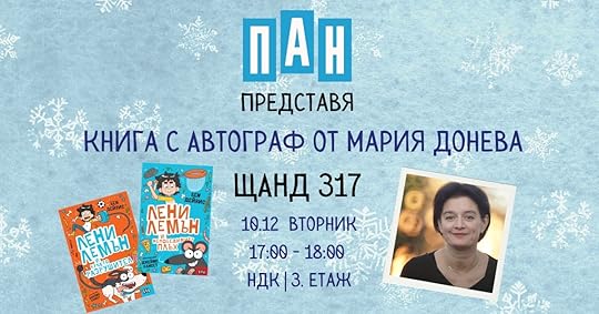 И двете са планирани за 10 декември, на щандовете на издателства ПАН и Жанет 45, които са един срещу друг. Първо, от 17 ч., при ПАН ще празнуваме какъв сладур е Лени Лемън, второ от 18 ч. ще празнуваме ВСИЧКО при Жанет 45.