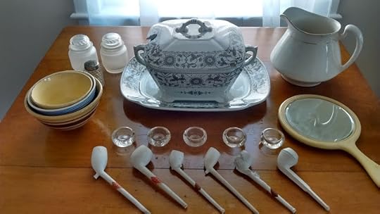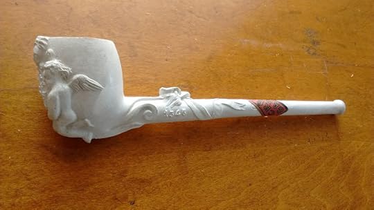 How did six elegant clay pipes make their way from a town in northern France to my mother's house in Vermont? Anyone who has ever emptied out a parent's attic is familiar with this type of puzzle. It took me four years to go through the contents of my mother's house. The last box I opened was in the basement, and it contained an assortment of dishes, a hand mirror, and the six pipes. The newspaper that had been used as packing material dated from the summer of 1968, suggesting the contents might have belonged to Grandma Tucker, since it was around this time that my parents began clearing out her house in Randolph Center. The pipes were wrapped in tissue and stored in a white ceramic pitcher (the pitcher is in the upper right corner of the photo). They are in pristine condition. They were made by Gambier, a French company, probably in the 19th century. How did they come into my possession? I know of nobody in the family who smoked a pipe (and indeed these pipes have never been smoked). Maybe Justin Tucker, my grandfather, whom I barely remember, was a pipe smoker. These pipes are beautiful, and Grandma Tucker had an eye for beauty. She was also a great collector of domestic treasures. Grandma's collection of pitchers hung from hooks near the ceiling and encircled the dining room; it numbered in the hundreds. The littlest pitchers were barely bigger than a thimble. It was broken up, I am sad to say, when my parents sold the contents of her little cottage at auction; my siblings and I have remnants of the original collection. The pitcher that contains the pipes was made by the Homer Laughlin China Company, the manufacturer of Fiesta dinnerware. Homer Laughlin still makes its dishes in the U.S. Maison Gambier opened in Givet (a town near the Belgian border) in 1780 and closed in 1928; at the height of its production, in 1860, it employed 600 workers. I will never know how these pipes found their way to 36 Highland Avenue. The best I can do is to learn more about the factory that produced them. You probably have items like this in your family, too. I have so many it's mind-boggling. I fully expect to spend the rest of my life figuring out what to do with them.