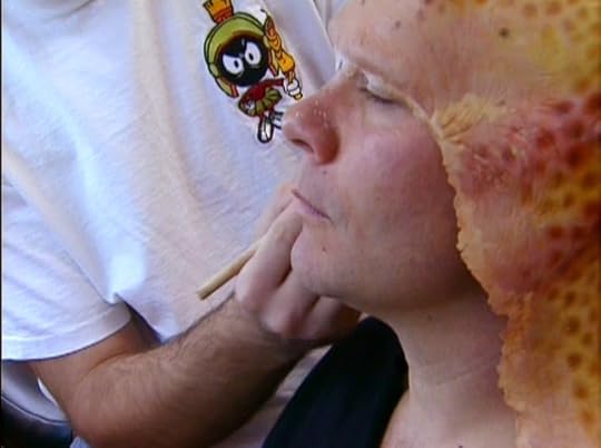 Ethan Phillips getting prosthetic makeup applied for the character of Neelix.