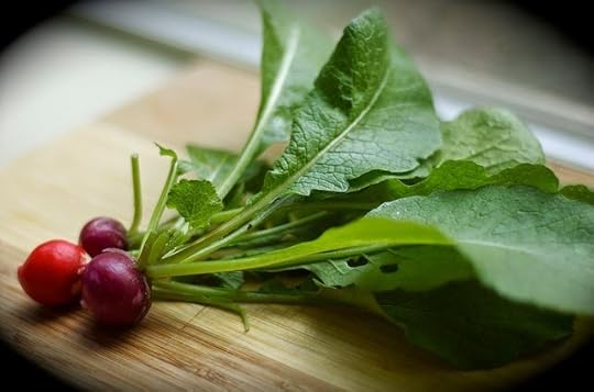 Get a bunch of radishes (about 40 to 50, he says, which sounds like a lot but who am I to say?), making sure the leaves are really fresh. Remove the leaves at the stem, throw them in the blender with a little water, and chop them on low. Put the mixture in a pot with some salted water, and cook over medium heat for as long as you like because he didn't specify. Meanwhile, boil two potatoes, mash them roughly, and add them to the pot. Season with 1/2 tsp (each) cumin, curry, and pepper and cook another 20 minutes or so on low. Add 1/4 liter of milk and 2 tsp creme fraiche, and a little more salt if necessary.