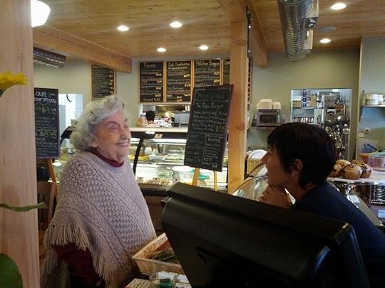 Aunt Lois at the general store in Northfield, Vermont, in September 2014. My mother crocheted her poncho.
