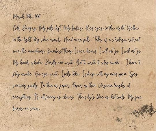 I spat and replied, “Gods, wipe it off at least.” When she’d done so, I cleared my throat, “The trees are lovely today. Not a lick of the kurse on them, unlike everything else. Oh, lovely, lovely day, the kurse is on its way. But no! Don’t tell anyone. Golden and Mister Missus both said they’d save us. We’ll die if they don’t! Foxed if we do. Foxed if we don’t. Haha! And it cuts off right there. Crazy old reptile. He journals like he talks.”