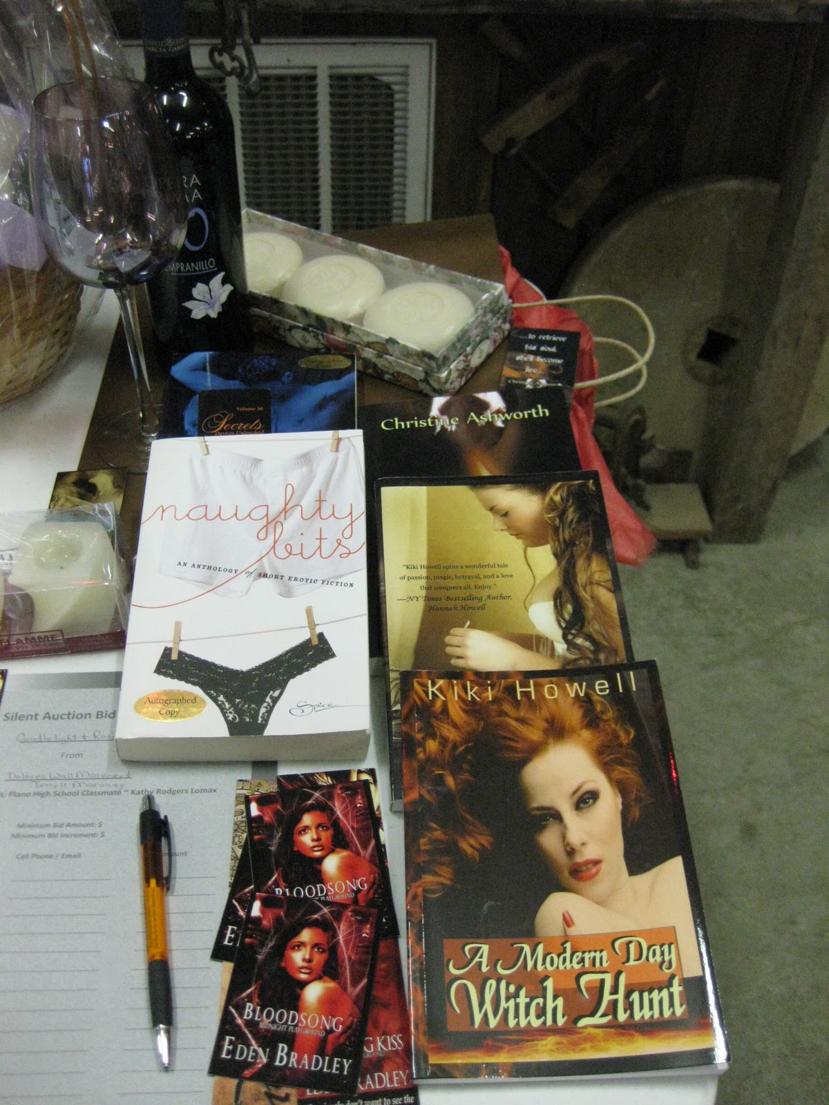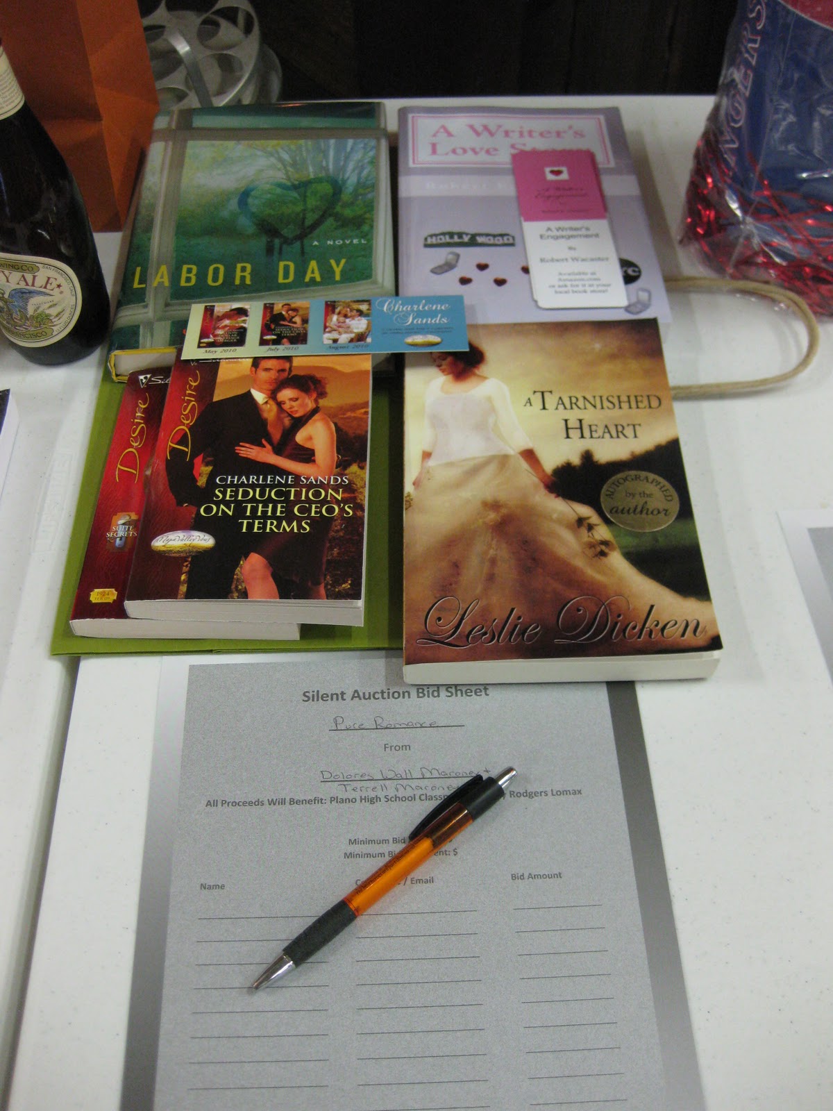 A silent auction was planned, and wanting to do my part, I put out a call to my fellow Romance authors for donations. I shouldn't have been surprised by the response, but it overwhelmed me! Offers came in from friends, and friends of friends. Soon, I had more eBooks than I knew what to do with, so I purchased a Kindle and loaded them all on it. (45 books in all). A good number of print books showed up on my doorstep, and I decided to split them into four smaller bid items.