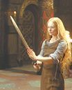 Interesting creative writing exercise: Observe how authors introduce a major female character. In The Great Gatsby, Fitzgerald introduces Daisy by having a character say, "Her voice is full of money." Here's how Tolkien introduces Eowyn: "Grave and thoughtful was her glance, as she looked on the king with cool pity in her eyes. Very fair was her face, and her hair like a river of gold. Slender and tall she was in her white robe girt with silver. But strong she seemed and stern as steel, daughter of kings."