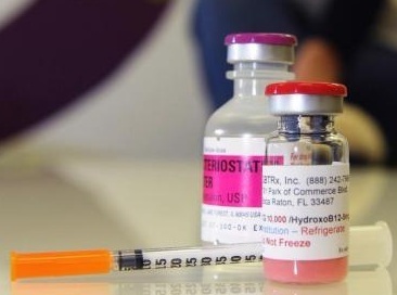 Syringes require a separate prescription. Some compounding pharmacies will automatically include them with the shipment, but do not forget to ask them. Never use the syringe that you used for injecting the bacteriostatic water into the powder for injecting yourself; the needle will be dull (I usually use a regular 23 gauge, 1 inch, 3 ml syringe to load up the water). Remember that you also need alcohol pads to clean the injection area and the tip of the vial. Typical injection sites are the abdominal area close to the navel or in the pubic fat pad. Pinch a little of fat on your abdominals and inject into that pinched area, then massage with an alcohol pad. Discard syringes into the sharps container that can be provided by your pharmacy.