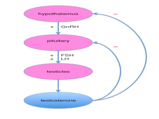 Testosterone replacement therapy and anabolic steroids can lead to HPTA (Hypothalamic-Pituitary-Testicular Axis- shown in figure below) dysfunction. Supplemental testosterone caninhibit the release ofthe body’s own testosterone production through negative feedback inhibition on LH levels. This feedbackinhibition also results in suppression of FSH levels, leading to suppression of sperm production (spermatogenesis).