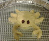 His raisin eyes compel youReaders know of our series mascot Crab Asaan, but not everyone is disposed to pay homage to his magnificence. This week, however, we had two surprises at the Commons, sent to us by two readers who felt it requisite to let the mighty Crab Asaan know of their fervent adulation. From England, the mighty Crab Asaan received a carrot cake whose top was engraved with his glorious image, and from Canada, a Pulla loaf made in the shape of his sp...