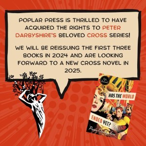 I’m beyond excited to announce that my Cross series of supernatural thrillers will be continuing, with a new novel scheduled for 2025. The novel will be published by Poplar Press, an imprint of Wolsak & Wynn. I’m particularly happy about this because Wolsak & Wynn published my last book, Has the World Ended Yet?, and did a fantastic job. They will also be reissuing the first three books of the series in 2024. (The books were originally published under the pen name Peter Roman.)