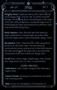 To help promote the book, I helped Sebastien create some D&D character cards based on the characters in the book. He’s been posting them on his Twitter account, so please check them out and add them to your own campaign if malevolent mages are your kind of thing.