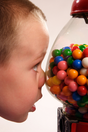 The other girls in the line and I looked at each other, impressed, and kinda sad that we hadn't offered the kid a quarter or two before he walked off. You have to teach kids early on that persistance pays off, right? Next time, if any of us see a kid using the forgotten quarter in a gumball machine strategy – let's hand him some extra quarters.