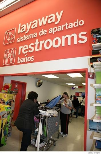 There are 5 ladies in the layaway line who have been waiting for an hour, most with their shopping carts filled to the brim. And it is not like they are buying TVs or expensive furniture or anything… Is that blanket really that expensive? Really? You are in this line for two towels?
