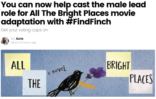When the media pays attention to the fact that you’re asking readers to help cast the role of Finch in All the Bright Places. I love this article in Celebmix.