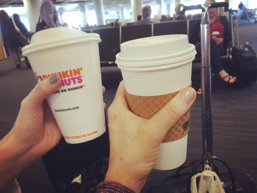 It’s too early for our faces, but @juliebuxbaum and I thought our coffee and tea looked lovely together. (Julie: “Even though my hand looks like an ass!”) We’re off to Texas for the North Texas Teen Book Festival! Come see us! ✈️
