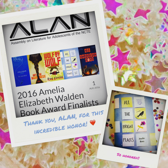 And All the Bright Places is nominated! I’m so thrilled and honored and overcome. This is an enormous honor, and I’m so happy to be in such prestigious company. <3
