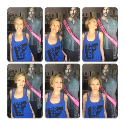So I did this photo shoot with my life-size #SamWinchester and my new #dogoodbebaddass shirt, only he wouldn’t cooperate. So I did my best to match his smolder. ❤️