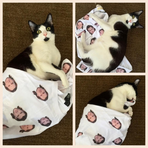 Omg what is it with Linus and Sam? First he tries to eat my beloved life-size cardboard Sam, and now this. I had to wrestle it away from him!