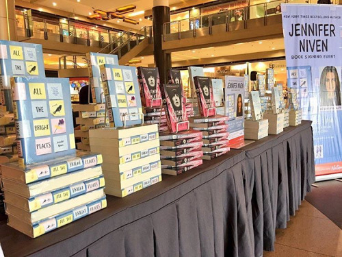 This is what it looked like today in Cebu. So lovely to see my Velva Jean books alongside All the Bright Places! And omg that poster! ❤️ #atbp #AlltheBrightPlaces #HoldingUptheUniverse #philippines #cebu #velvajean #booksigning (at Cebu City, Philippines)