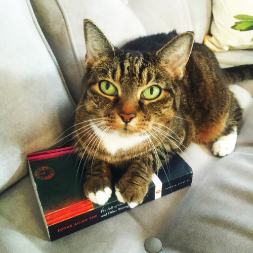 Lulu and I have been reading a little Edgar Allan Poe today. She is, after all, a literary cat. ❤️ #atbp #AlltheBrightPlaces #cutecat #catsofinstgram #lulu #edgarallanpoe #poe #reading #amreading #literarycat #books #bookstagram (at Los Angeles, California)