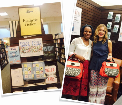 Nicola Yoon and I had a typewriter bag reunion at Barnes & Noble tonight! And elsewhere in the store our books were also keeping each other company! ❤️️ #AlltheBrightPlaces #atbp #nicolayoon #everythingeverythingbook #barnesandnoble #authorevent #kerrykletter #TheFirstTimeSheDrowned #booklaunch #katespade #bagtwins #typewriterbag (at Barnes & Noble Events, The Grove)