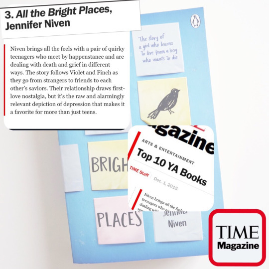 TIME Magazine has chosen its Top 10 YA/Children’s Books of the Year, and All the Bright Places is number 3, right behind my lovely friend Drew Daywalt and the terrific Rainbow Rowell.
