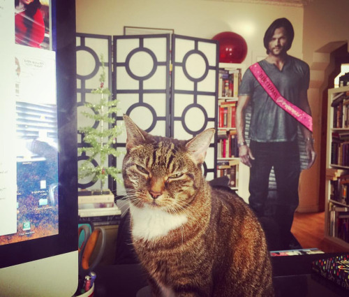 Linus loves All the Bright Places. He’s learning to be a literary cat! First lesson: lie on desk, preferably directly on top of my work.
