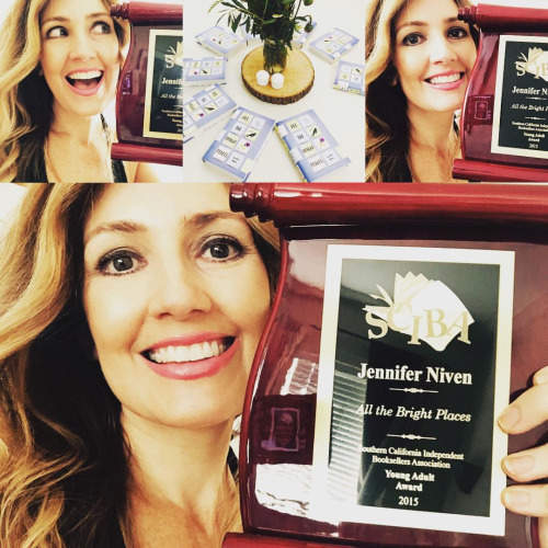 OMG!!!!! Thank you with all my heart to SCIBA, Southern California’s Independent Booksellers, for giving All the Bright Places their Young Adult Book Award for 2015. ❤️ As I said in my acceptance speech, indie booksellers are a lifeline for readers and writers, and I couldn’t do what I do without them. They are my heroes, which is why this award means so much.