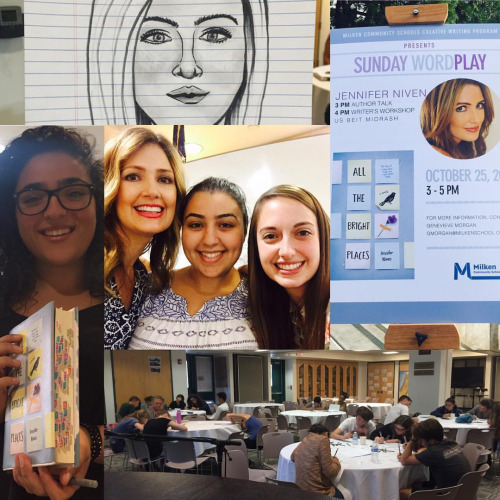 I spent the loveliest day with the students at Milken Community School here in Los Angeles. We talked All the Bright Places, Elle Fanning, Finch, writing, and Germ, and for the second hour, Germ’s amazing Lit Editor/Managing Editor Briana Bailey (aka one of the three Briana’s in the book!) and I led a writing workshop with creative writing students. They were all LOVELY! (And look at the beautiful drawing of Elle as Violet by @maddie_evette_art