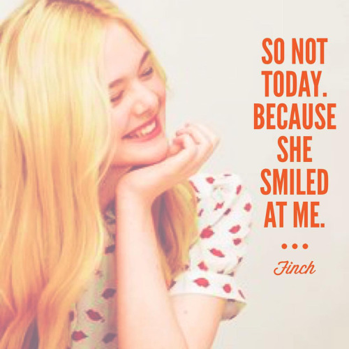 Finch: “It’s because you smiled at me that day in class. A real smile, not the bullshit one I see you give everyone all the time where your eyes are doing one thing and your mouth is doing another.”