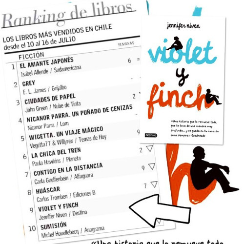 Violet y Finch is #9 in Chile! ❤️️ #AlltheBrightPlaces #violetandfinch #violetyfinch #finch #violetmarkey #theodorefinch #ya #jenniferniven #bestseller #books #spanish #chile