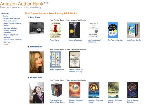 Look who’s currently the #2 YA author on amazon, just below John Green and just ahead of Veronica Roth! WHAT IS THIS LIFE?! (*collapses on keyboard*)