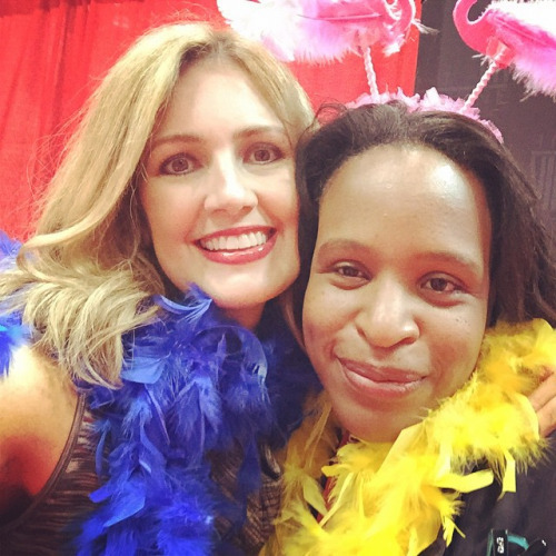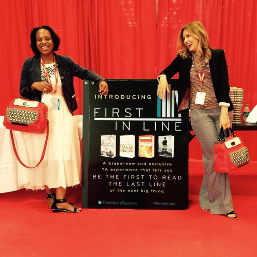 Bag sisters on the red carpet!! ❤️️❤️️ #allthebrightplaces #jenniferniven #nicolayoon #everythingeverything #penguinrandomhouse #BookCon2015 #FirstinLine #ya #katespade #bestbagever #typewriterpurse #writerbags (at Javits Center)