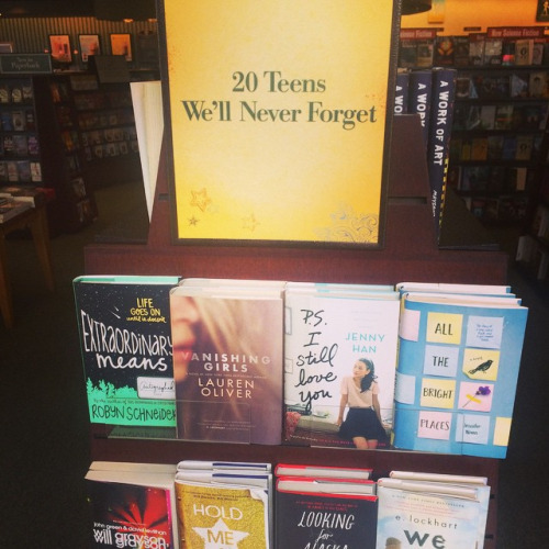 Look what’s happening over at Barnes & Noble at the Grove… All the Bright Places is a YA “we’ll never forget.” OMG